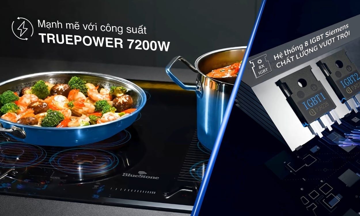 Bên trong, hệ thống IGBT số lượng vượt trội được bố trí theo chuẩn thiết kế bền nhiệt, mang lại hiệu suất ổn định, giảm thất thoát năng lượng và đảm bảo bếp vận hành mạnh mẽ ngay cả khi sử dụng trong thời gian dài.