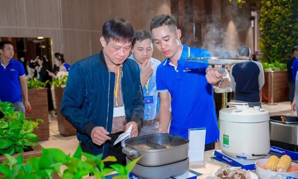 Tại sự kiện, quý đối tác và khách hàng có cơ hội trải nghiệm trực tiếp các sản phẩm nổi bật của BlueStone, từ dòng bếp từ âm công nghệ Inverter tiết kiệm điện, nồi chiên không dầu, nồi cơm điện, máy ép chậm, nồi hấp đến máy làm sữa hạt đa năng,… cùng những sản phẩm mới sắp ra mắt trong mùa Tết 2026. Những trải nghiệm thực tế này không chỉ khẳng định chất lượng và công nghệ tiên tiến, mà còn giúp đối tác hiểu rõ hơn về định hướng phát triển sản phẩm lấy “người tiêu dùng làm trung tâm” mà BlueStone đang theo đuổi.