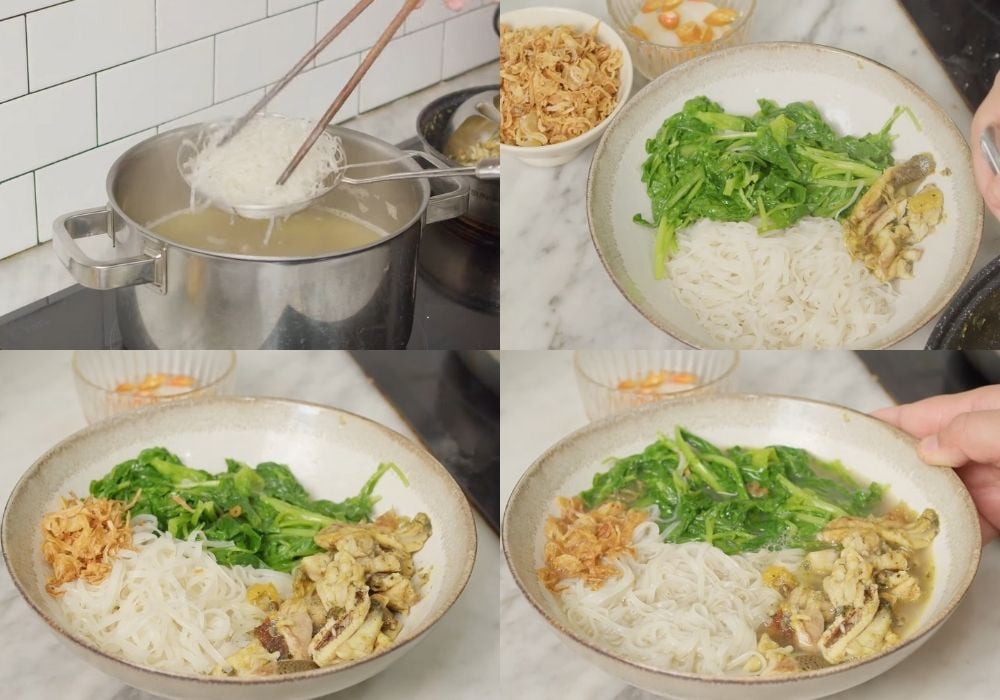 Khi ăn, vắt thêm chút chanh, vài lát ớt tươi hoặc măng ớt ngâm. Món ăn này thích hợp cho cả bốn mùa, dù là bữa sáng vội vã hay bữa trưa thảnh thơi đều rất tuyệt vời.