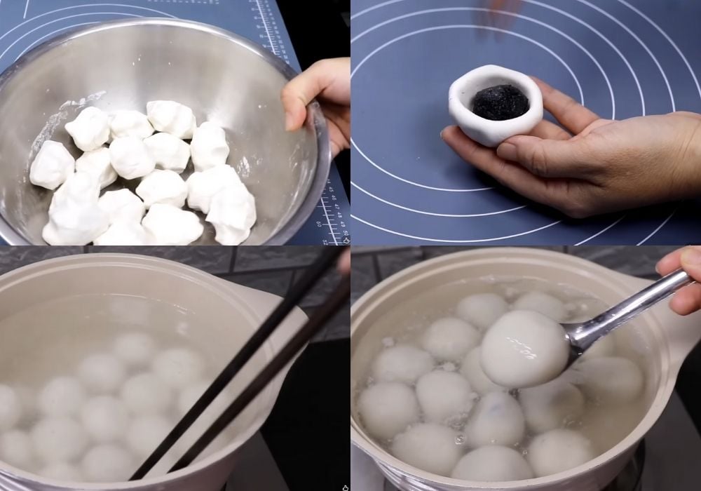 - Luộc bánh: Đun sôi nồi nước lớn. Thả nhẹ nhàng từng viên bánh vào. Luộc ở lửa vừa. Khi bánh nổi lên mặt nước khoảng 1-2 phút là bánh chín. Vớt bánh ra, thả ngay vào bát nước lạnh để bánh săn lại và không bị dính.