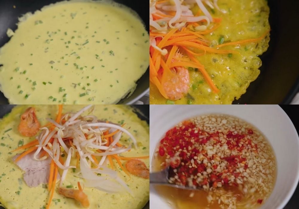 Lưu ý: Chảo phải thật nóng mới đổ bột vào để tạo tiếng xèo vui tai và giúp vỏ bánh không bị dính. Tuy nhiên sau đó phải hạ lửa để bánh chín thấu từ trong ra ngoài.