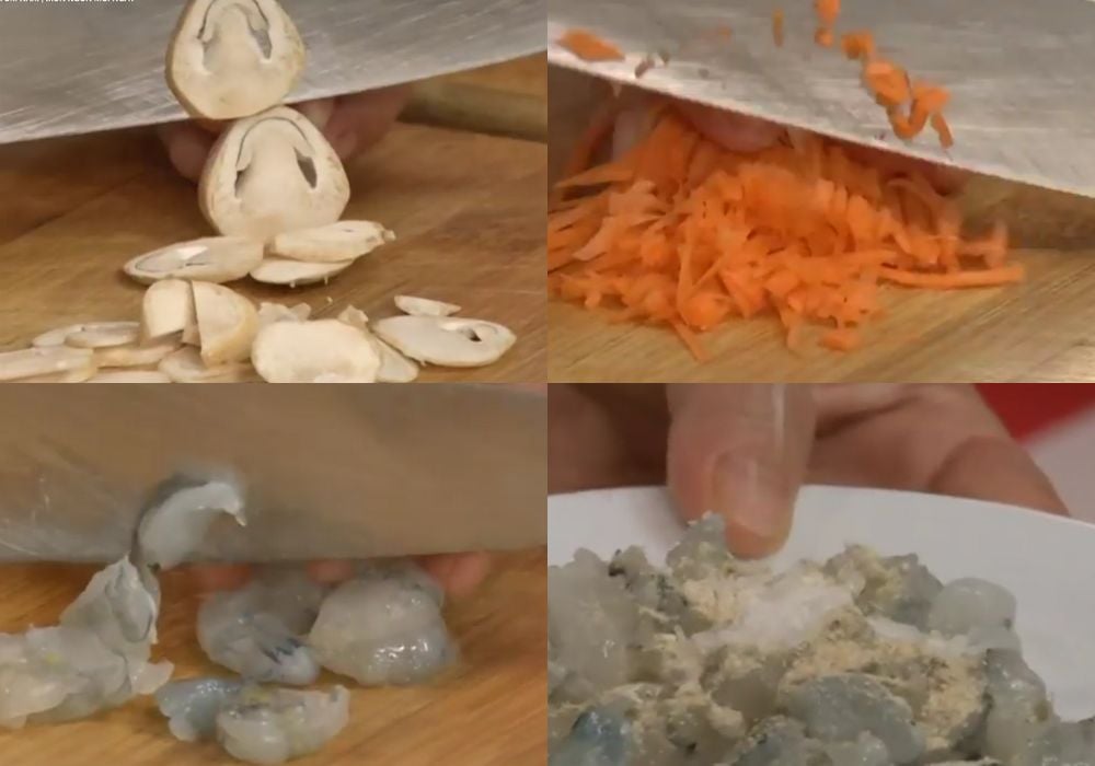 - Thêm hải sản: Ngoài tôm, có thể thêm thịt cua gỡ, thịt ghẹ hoặc những miếng cá phi lê thái nhỏ vào phần nhân.