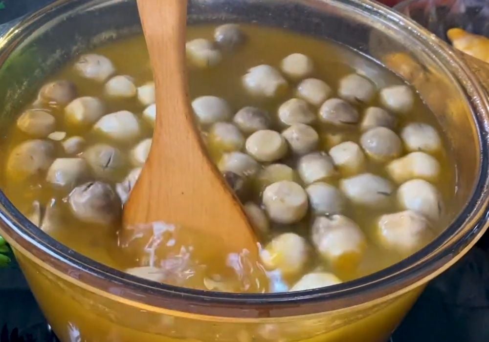 - Hâm nóng: Khi ăn, đun sôi nước dùng, khuấy đều tay (vì có bột năng dễ cháy đáy), cho bánh canh mới vào nấu nóng.