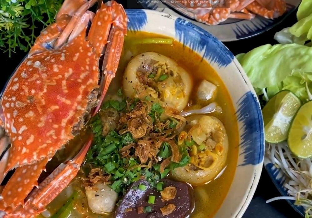 Nước dùng chuẩn của món này phải có độ sánh nhẹ, vị ngọt thanh từ xương và hải sản, hòa quyện với màu điều bắt mắt.