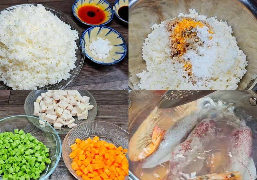 Sơ chế kỹ giúp món cơm chiên hải sản thơm ngon, không tanh và màu sắc đẹp mắt.