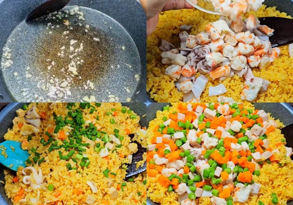 - Đây là bước quan trọng nhất của món cơm chiên hải sản.
