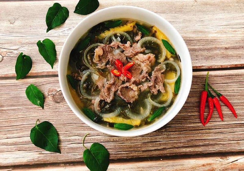 Gầu bò nhúng lá giang là món ăn được ưa chuộng trong những ngày mưa lạnh hoặc cần vị chua nhẹ để kích thích vị giác. Vị béo của gầu bò hoà quyện với vị chua thanh đặc trưng của lá giang tạo nên một món ăn vừa ngon miệng, vừa giúp giải nhiệt. Món này thường được dọn kèm bún tươi hoặc cơm trắng, thêm một chén nước mắm mặn cay là đủ để làm hài lòng những thực khách khó tính nhất.