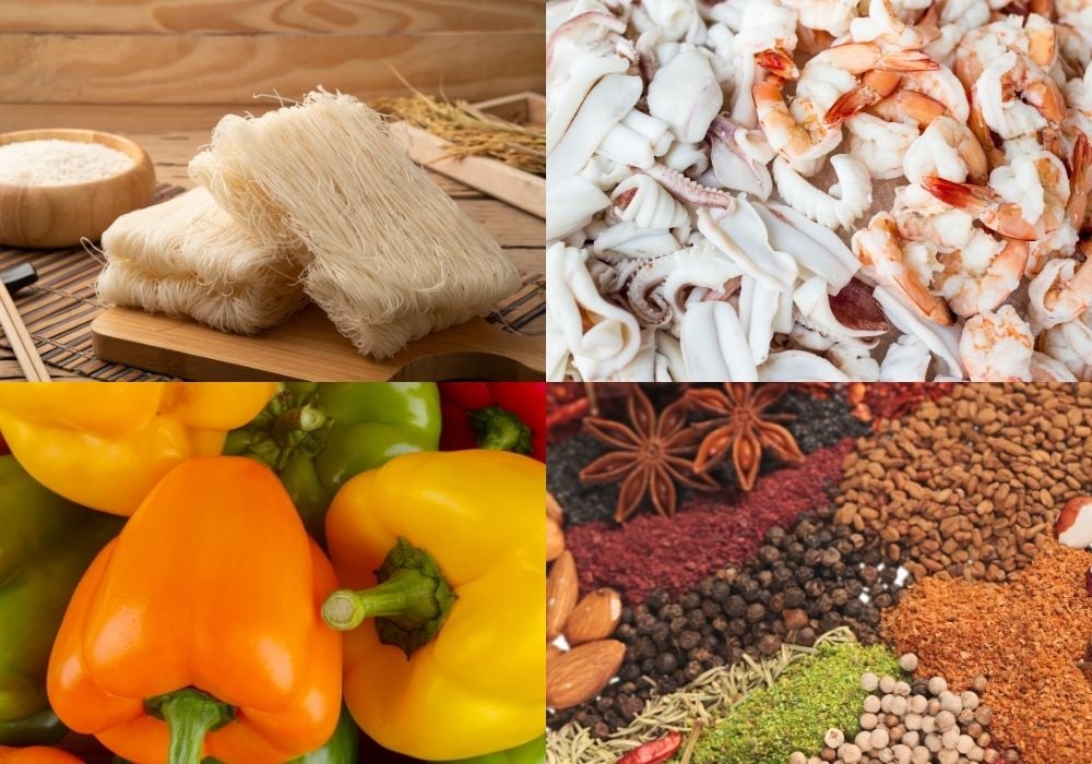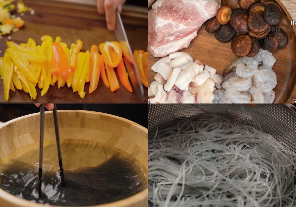 Sơ chế miến và hải sản, rau củ