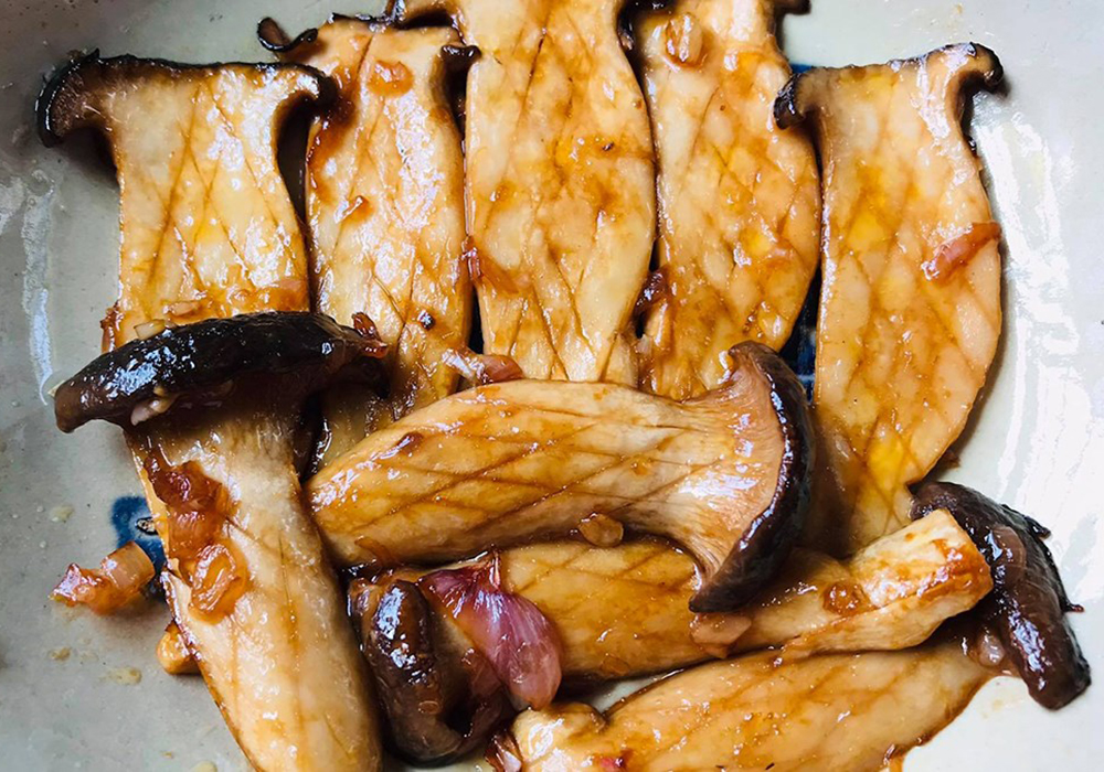 Nấm đùi gà kho xì dầu là món chay nổi bật nhờ hương vị đậm đà và kết cấu chắc, dai tự nhiên của nấm đùi gà. Khi được kho cùng xì dầu, nấm thấm đều vị mặn ngọt, béo nhẹ mà không ngấy. Món này thường được nấu với chút tiêu sọ, gừng, hành boa-rô, tạo nên lớp nước sốt sóng sánh phủ đều miếng nấm vàng óng. Hương thơm của xì dầu kết hợp cùng nấm mang lại trải nghiệm vị giác mới lạ, rất hợp dùng trong bữa cơm chay ngày mát trời hay làm món ăn kèm cho các dịp cúng chay.