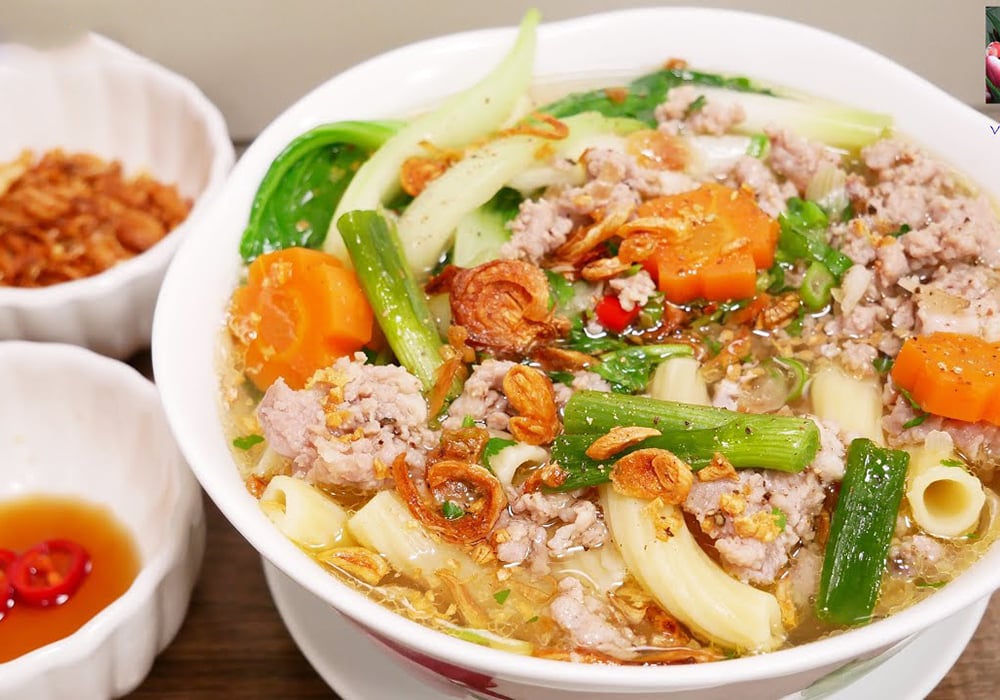 Nui thịt băm là lựa chọn đơn giản nhưng cực kỳ bắt vị, đặc biệt thích hợp cho trẻ nhỏ. Thịt băm thấm gia vị vừa ăn, quyện trong nước dùng thanh nhẹ tạo nên sự hài hòa dễ chịu. Khi ăn kèm cà rốt hoặc bí đỏ, món ăn trở nên giàu dưỡng chất và đẹp mắt hơn. Nui thịt băm thường được dùng trong bữa sáng vì cách chế biến nhanh, phù hợp những ngày bận rộn nhưng vẫn muốn chuẩn bị món ăn nóng sốt cho cả nhà.