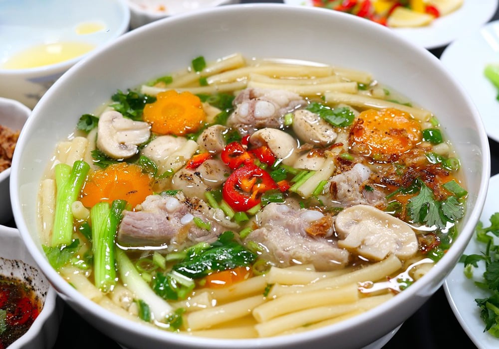 Nui xương heo mang đến hương vị đậm đà nhờ nước dùng ninh từ xương, tạo độ ngọt tự nhiên mà không cần nhiều gia vị. Khi ăn, cảm giác nóng hổi cùng sự hòa quyện giữa nui mềm và vị béo nhẹ của xương khiến món ăn trở nên hấp dẫn. Đây là món thích hợp cho bữa sáng, nhất là những ngày se lạnh, giúp cơ thể ấm lên và tràn đầy năng lượng. Nui xương heo cũng dễ biến tấu, bạn có thể thêm rau củ để món ăn thanh hơn và giàu dưỡng chất hơn.