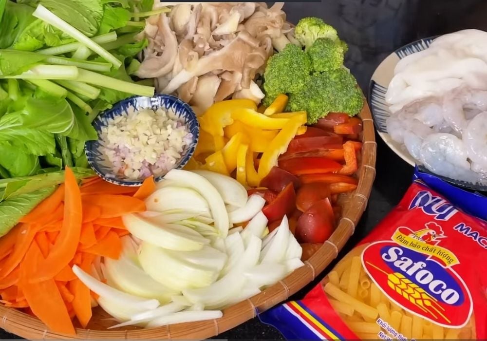 Đây là công đoạn chuẩn bị quan trọng để món nui xào hải sản khi chế biến sẽ nhanh gọn và đạt chất lượng tốt nhất.