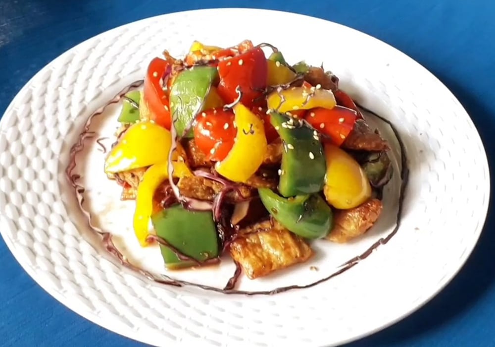 Là món ăn thanh mát, tàu hũ ky xào ớt chuông sử dụng các loại ớt chuông đỏ, xanh, vàng xắt sợi, xào cùng tàu hũ ky cắt nhỏ cho tới khi ngấm vị. Ớt chuông giữ được màu sắc tươi tắn, vị giòn ngọt đặc trưng kết hợp cùng tàu hũ ky dai nhẹ, tạo nên tổng thể vừa giàu vitamin, vừa đủ năng lượng cho một bữa ăn chay cân đối. Hương thơm từ ớt chuông hòa quyện vị bùi của tàu hũ ky khiến món ăn này thích hợp cho cả trẻ nhỏ lẫn người lớn, ăn kèm cơm trắng hoặc dùng làm món xào chính trong bữa cơm.