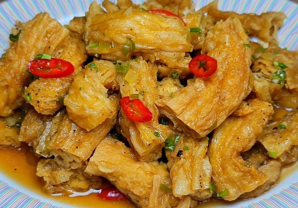 Đây là món kho “quốc dân” trong bữa cơm chay, nhờ sự đậm đà của gia vị và độ dai mềm của tàu hũ ky sau khi rim cùng nước dừa, xì dầu, tiêu sọ… Kho tàu giúp tàu hũ ky thấm trọn gia vị, mỗi miếng đều vàng nâu bóng bẩy, ăn kèm cơm nóng rất bắt vị. Món này phù hợp với cả người lớn tuổi và trẻ nhỏ, dễ chế biến và tiện bảo quản, thường xuyên xuất hiện trong các dịp rằm, mồng một hoặc bữa cơm sum họp gia đình.