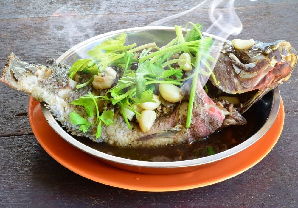 Đây là cách chế biến cá hấp mang đậm phong vị Á Đông, đặc biệt phổ biến trong ẩm thực Trung Hoa. Cá (thường là cá diêu hồng, cá chẽm, cá mú) được hấp chín tới cùng gừng, hành lá, sau đó rưới lên hỗn hợp xì dầu (nước tương) pha cùng đường, dầu hào và dầu mè đun nóng già. Vị mặn ngọt đậm đà của xì dầu quyện với vị ngọt tự nhiên của cá, thơm lừng mùi gừng hành, tạo nên món ăn vô cùng đưa cơm.