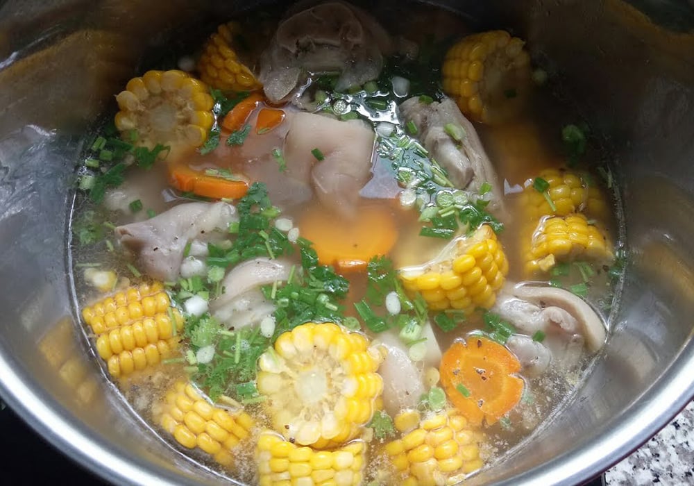 Canh bắp hầm giò heo mang đến sự béo vừa phải, bổ dưỡng nhưng không tạo cảm giác ngấy nhờ sự cân bằng của vị ngọt tự nhiên từ bắp. Phần giò heo được ninh chín mềm, lớp da giòn nhẹ kết hợp với thịt mềm mượt, tạo cảm giác tròn vị trong từng muỗng canh. Khi giò heo được nấu cùng bắp và các loại rau củ, nước dùng trở nên đậm đà và thơm hơn, vừa thanh vừa giàu dinh dưỡng.
