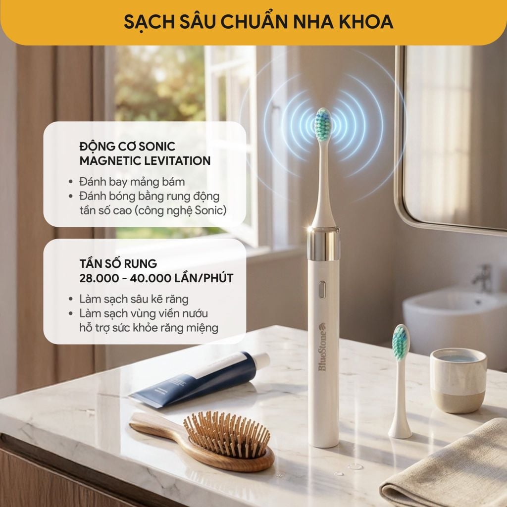 Giữa nhịp sống bận rộn, nhiều người vẫn duy trì thói quen đánh răng mỗi ngày nhưng hiệu quả làm sạch chưa thực sự tối ưu do lực chải không đều và khó tiếp cận sâu vào các kẽ răng. Vì vậy, bàn chải đánh răng điện ngày càng được ưa chuộng nhờ khả năng hỗ trợ làm sạch hiệu quả và ổn định hơn so với bàn chải thông thường. Với thiết kế hiện đại cùng công nghệ rung tiên tiến, Bàn chải đánh răng điện BlueStone OCB-1015W mang đến giải pháp chăm sóc răng miệng tiện lợi, giúp nâng cao trải nghiệm vệ sinh răng miệng mỗi ngày.