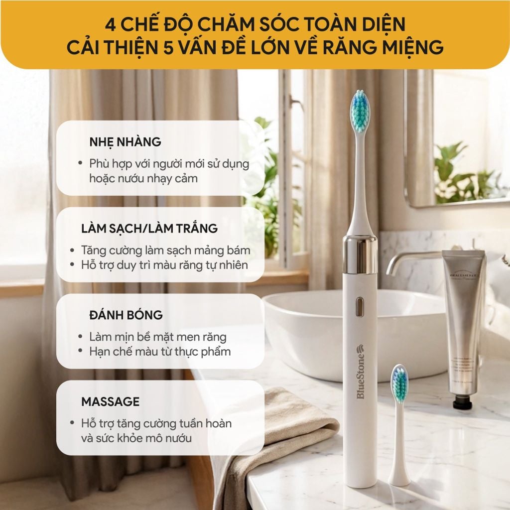 BlueStone thiết lập 4 chế độ chuyên biệt để đáp ứng linh hoạt nhiều nhu cầu chăm sóc răng miệng trong cùng một thiết bị: