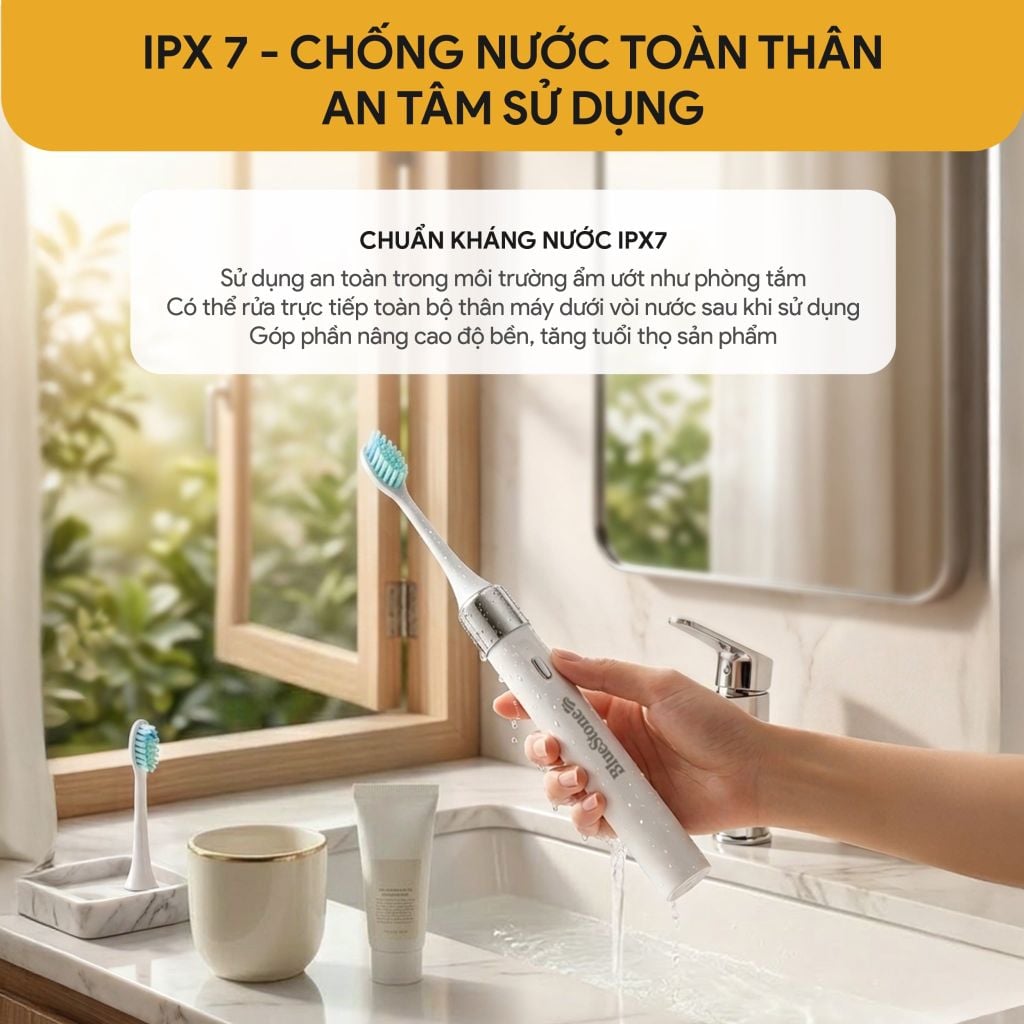 Được thiết kế để đồng hành cùng bạn trong hành trình chăm sóc sức khỏe răng miệng dài lâu, BlueStone OCB-1015W sở hữu khả năng bảo vệ vượt trội với chuẩn kháng nước IPX7 cao cấp.