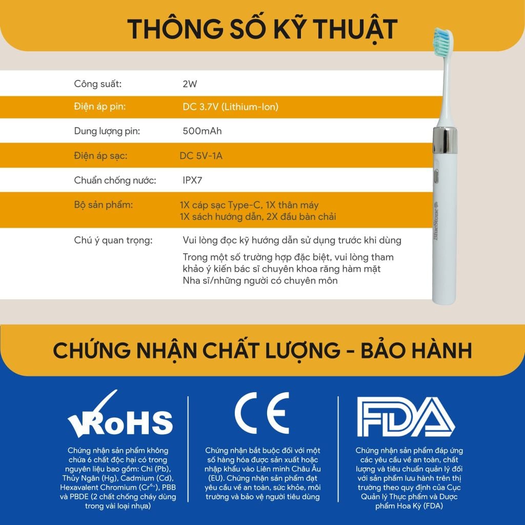 Tự động ngắt thông minh: Sau khi hoàn tất chu trình chải răng máy sẽ tự động tắt, giúp bảo vệ máy và tiết kiệm pin tối đa.