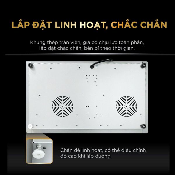 Điểm mới đáng chú ý, chiếc bếp từ đôi ICB-6825 này được thiết kế phù hợp với mọi không gian bếp, có thể lắp âm sang trọng hoặc lắp dương tiện lợi. Đặc biệt, phần chân đế có thể tùy chỉnh độ cao khi lắp dương, mang lại sự linh hoạt tối đa cho người dùng. Khung thép tràn viền, gia cố chịu lực toàn phần, lắp đặt chắc chắn và bền bỉ theo thời gian.