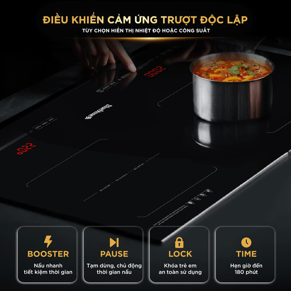 Cảm ứng trượt độc lập cho mỗi vùng nấu -