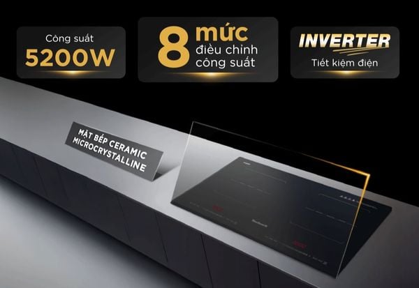 Bếp ứng dụng công nghệ Inverter tiên tiến, không chỉ giúp bếp hoạt động ổn định mà còn giảm đáng kể lượng điện năng tiêu thụ. Nhờ khả năng duy trì công suất đều đặn, bếp hạn chế hao phí điện, đồng thời giúp món ăn được nấu chín đều, giữ trọn hương vị tự nhiên. Đây là lựa chọn lý tưởng cho gia đình chú trọng đến tiết kiệm chi phí sinh hoạt và bảo vệ môi trường.
