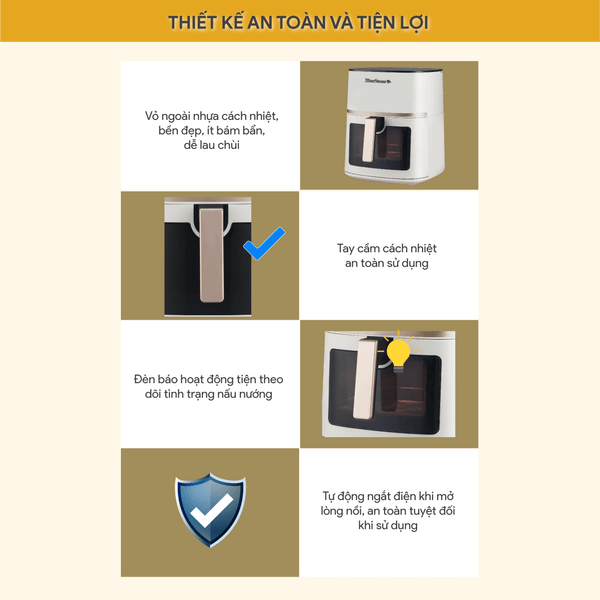 + Chức năng an toàn: Tự động ngắt, bảo vệ quá nhiệt