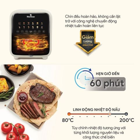 Bạn muốn thưởng thức những món chiên nướng thơm ngon mà không lo ngại về lượng dầu mỡ? Nồi chiên không dầu 7L của BlueStone sẽ là lựa chọn hoàn hảo. Với công nghệ hiện đại và thiết kế thông minh, sản phẩm hứa hẹn mang đến cho bạn những trải nghiệm nấu nướng tuyệt vời